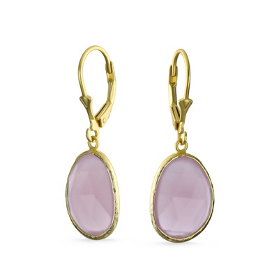 Bling Jewelry Elegant Soft Pink Dangle Earrings Double Round Teardrop, Lever Back 14K Gold-Plated .925 Sterling Silver Color - Rose