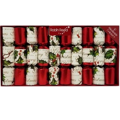 Robin Reed English Holiday Christmas Crackers – Bows and Berries, Set of 10, 8.5" Each, Ages 13+