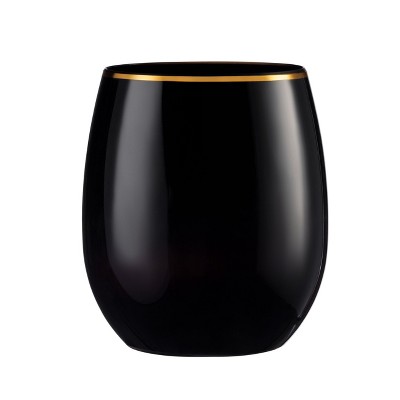 Posh Setting 12 oz Black with Gold Rim Plastic Disposable stemless Wine goblet - 6 Pack