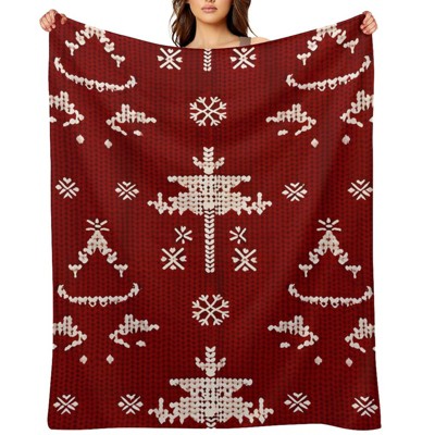 FIONECA Christmas Burgundy Tree Snowflake Pattern Soft Warm Throw Blanket Holiday Home Decor 30x40 inches
