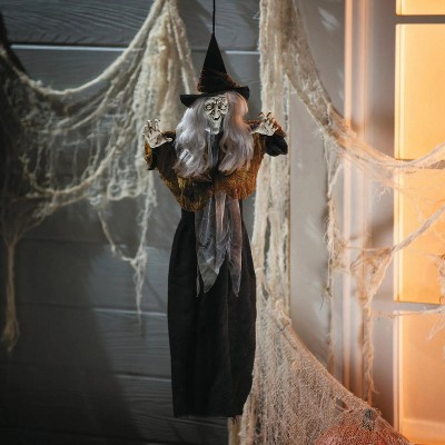 Seasonal Visions Animated Lunging Haggard Witch Halloween Decoration - 6 ft - Black