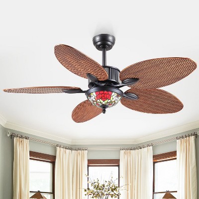 48 Inches Tropical Ceiling fan with Palm Leaf Blades and LED Remote Control for Living Room Bedroom