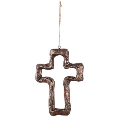 Dicksons Rugged Stone Look Cross with Jute Rope, Bronze 5.75 x 4.25 Inch Resin Wall Art Plaque