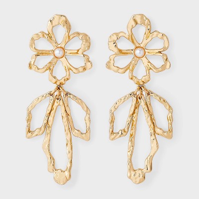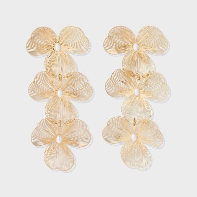 Triple Floral Drop Earring - A New Day™ Gold/Pearl