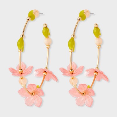 Floral Beaded Hoop Earring - A New Day™ Pink