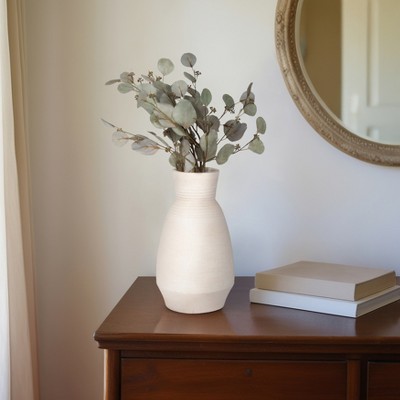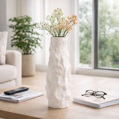 Tall Jagged Textured Vase for Room Decor - Ceramic Vase for Modern Home Decor - Decorative Flower Vase for Room, House, Office and Table - 17", White
