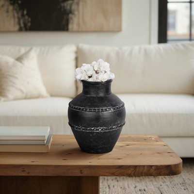 Sculptural Round Vase for Room Decor - Terracotta Flower Vase - Textured Accent for Room, Bedroom, House, Office and Table Styling - 12", Black