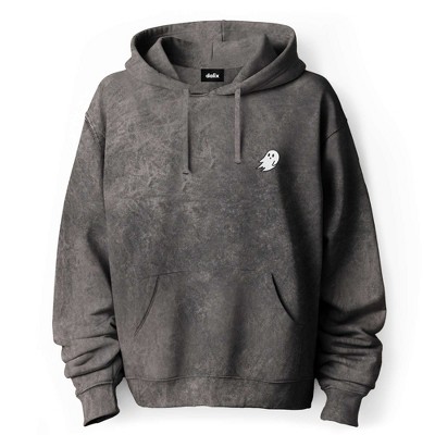 Dalix Ghost Embroidered Washed Hooded Sweatshirt Fleece Soft Cotton Mens in Gray M Medium