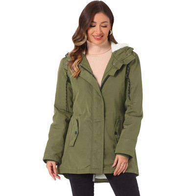 Agnes Orinda Women's Plus Size Hooded Buttons Zipper Elastic Waist Fleece Lined Long Sleeve Warm Parka Jackets with Pockets