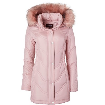 Sportoli Womens Winter Coat Faux Fur Trim Hooded Down Alternative Puffer Jacket