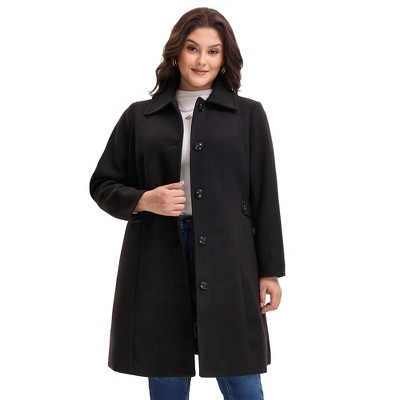 Agnes Orinda Women's Plus Size Single Breasted Detachable Hooded Winter Trench Overcoats with Pocket