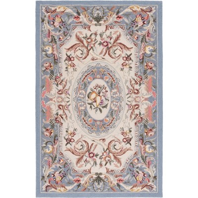 Gray Blue And Ivory Wool Floral Medallion Hand Hooked Area Rug