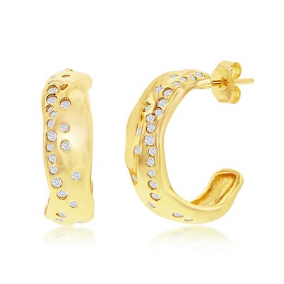 Bella Silver Sterling Silver 35mm Inside-Outside Round CZ Hoop Earrings - Gold Plated - Gold