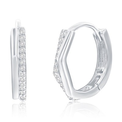 Bella Silver Sterling Silver, 3x30mm Inside-Outside Double Row CZ Hoop Earrings - Silver