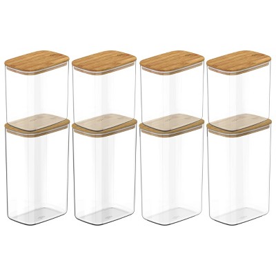 OU Food Storage Container Set 16pc (set of 8) Clear Airtight Plastic Containers, Leak Proof Bamboo Lids, Stackable Kitchen Pantry Organizer Jars