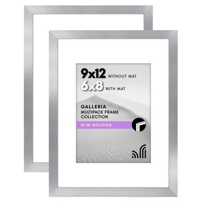 Americanflat 9x12 Picture Frame with Polished Plexiglass - Set of 2 - Use as 6x8 Frame with Mat or Display 9x12 Photo Without Mat - Galleria