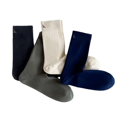 Anna-Kaci Men's Soft Knit Crew Socks 3 or 4 Pair Stretch Comfort with Ribbed Cuff and Minimal Embroidered Detail - 4-pair Multicolors