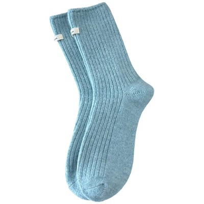 Anna-Kaci Women's 3-Pair Ribbed Crew Socks Set Soft Stretch Knit Fabric Minimal Everyday Comfort Socks - Blue