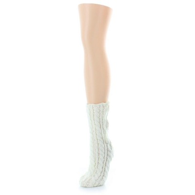 Memoi Cable Braid Chunky Knit Boot Socks Winter White One Size
