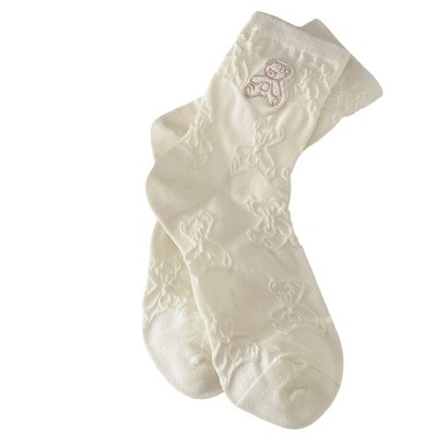 Anna-Kaci Women's 3-Pair Crew Sock Set Teddy Bear Textured Knit Soft Stretch Comfortable Everyday Socks - Beige