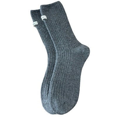Anna-Kaci Women's 3-Pair Ribbed Crew Socks Set Soft Stretch Knit Fabric Minimal Everyday Comfort Socks - Gray