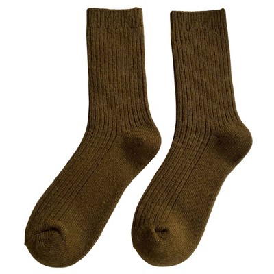 Anna-Kaci Women's Ribbed Crew Socks 3 Pair Soft Stretch Knit Classic Everyday Comfort Fit - Olive