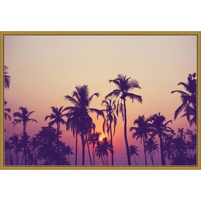 23" x 16" Palm Sky 1 by Design Fabrikken Framed Canvas Wall Art - Amanti Art: Sunrise Grove Silhouette