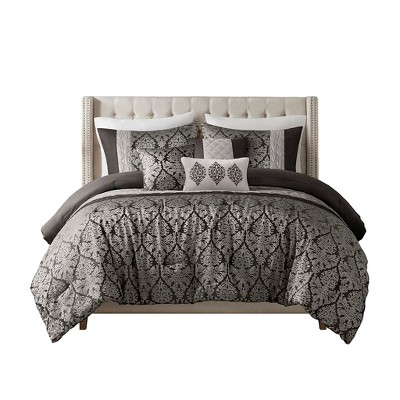 7 Piece Polyester Charmeuse Comforter Set Taupe King