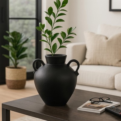 Decorative Sculptural Vase with Handles for Living Room Decor - Perfect Flower Vase for Bedroom Styling, Office Accent, or Home Decor