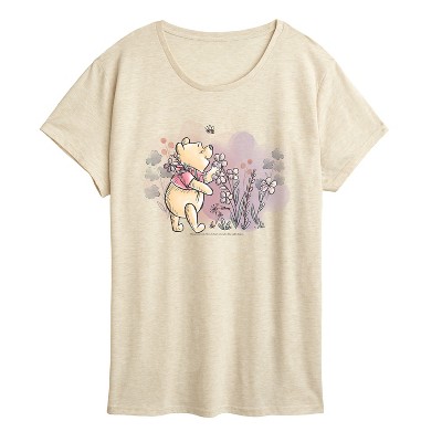 Women's Winnie the Pooh Smell the Flowers Short Sleeve Graphic T-Shirt - Birch - Large