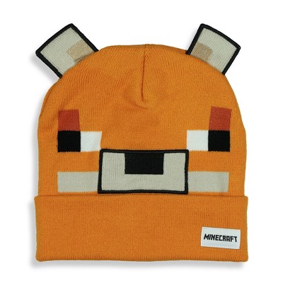 Minecraft Beanie Adult Big Face Fox Character 3D Ears Cuff Knit Hat Cap Orange