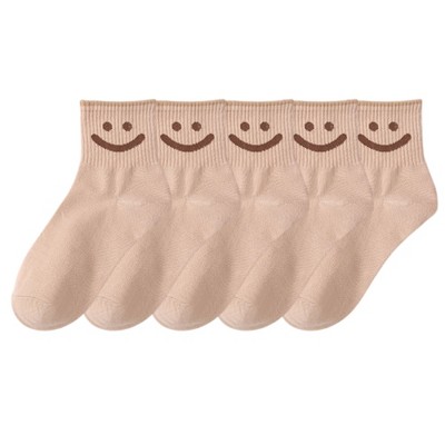 Anna-Kaci 5 Pairs Women's Ankle Socks with Smiley Face Design Soft Cotton Ribbed Cuffs for Casual Everyday Wear