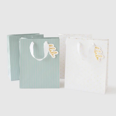 4pk Small Foil Dot and Pinstripe Christmas Gift Bags with Tags Green/White - Sugar Paper™ + Target