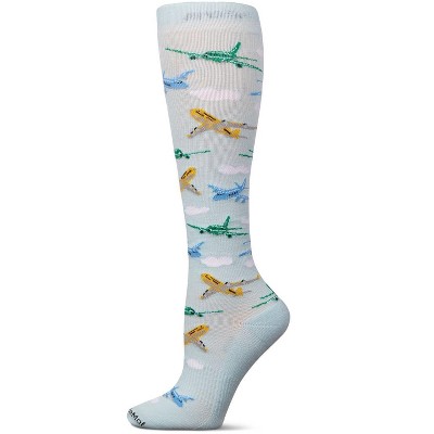 Memoi Women's Bees Bamboo Blend 8-15 MMHG Graduated Compression Socks Light Blue 9-11