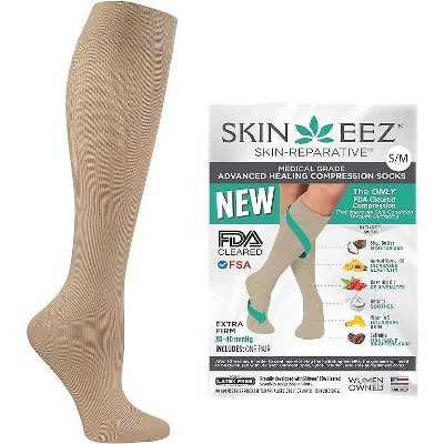 Skineez Medical Grade Advanced Healing Compression Socks 30-40mmHg, White, Black or Tan, Small - X Large Sizes, 1 Pair