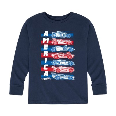 Boys' - Hot Wheels - America Red White and Blue Cars Long Sleeve Graphic T-Shirt