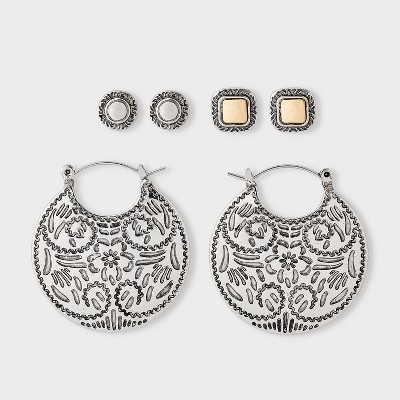 Western Stud Hoop Trio - Universal Thread™ Silver