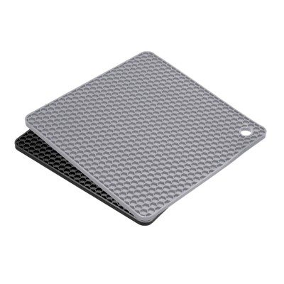 Unique Bargains Heat Resistant Non-Slip Silicone Kitchen Trivet Mats Light Gray, Black 2 Pcs