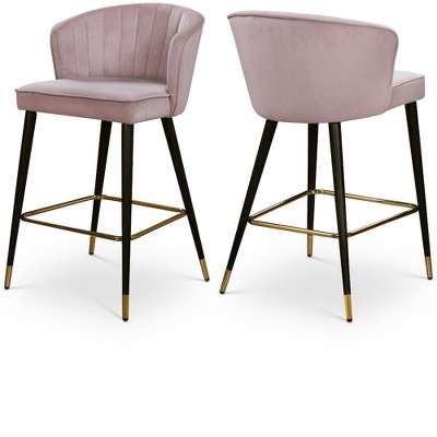 Meridian Furniture,Cassie Pink Velvet Stool, Set of 2