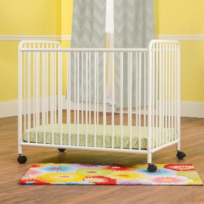 Child Craft Siesta Metal Compact Non-Folding Portable Crib with 2" Crib Mattress and Locking Wheels, Durable Metal Construction, Easy to Clean (White)