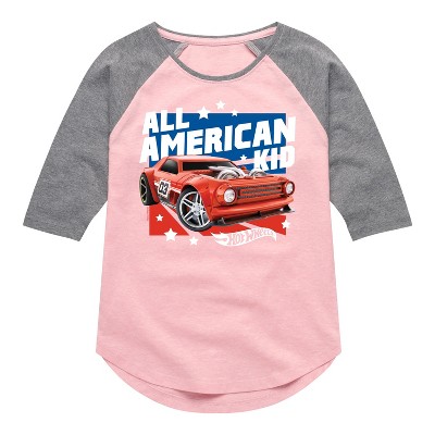 Girls' - Hot Wheels - All American Kid Shirt Tail Raglan Graphic T-shirt