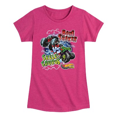 Girls' - Hot Wheels - Bone Shaker Vs Skelesaurus -Youth Girls Short Sleeve T-Shirt Fitted Short Sleeve Graphic T-Shirt
