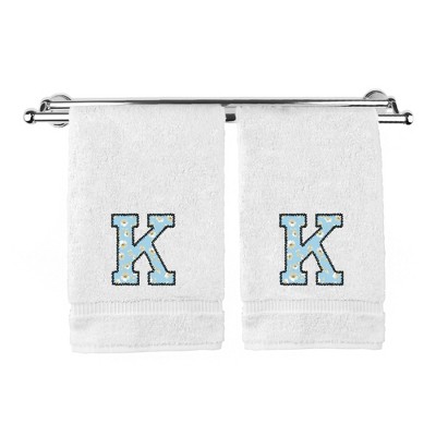 BC BARE COTTON Monogrammed Hand Towels, Personalized Gift, Set of 2 - Embroidered Writing with Light Blue