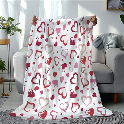 Lomsoe Pink & Red Heart Flannel blanket,Suitable for Travel & Romantic, Machine Washable, All-Season Comforter,Valentine's Day gift.