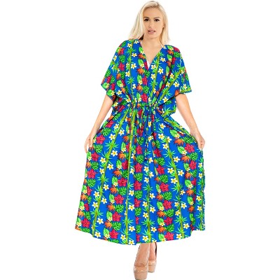 LA LEELA Women's House Daily Routine Evening Wear Vacation Holiday Casual Loungewear Loose Caftan Slit Dress Maxi House Sleep Shirt 2X-3X Blue, Floral