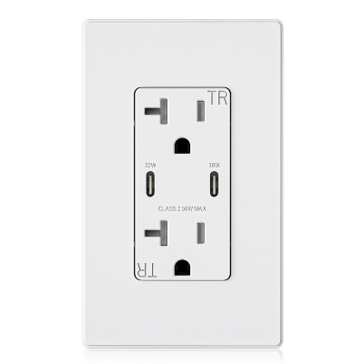 ELEGRP 30W USB Outlets Receptacles, 20 Amp Outlet with USB C and USB A Ports for Support Fast Charge Protocols,w/Wall Plate, UL Listed,White,2 Pack