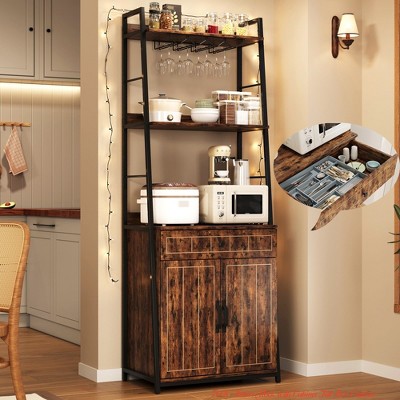 Bakers Rack with Drawer 70.8" Baker Rack w/ Cabinet Tall Bar Cabinet Industrial Kitchen Stand w/ Cabinet Large Microwave Storage Rack
