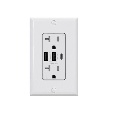 ELEGRP 30W 6.0 Amp 3-Port USB Wall Outlet, 20A Duplex Receptacle with Dual Type C & A Ports,UL Listed, w/Wall Plate,Matte White 1PC