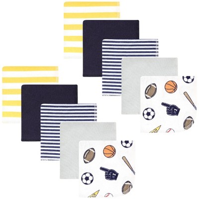 Hudson Baby Infant Boy Flannel Cotton Washcloths, Sports Fan 10 Pack, One Size