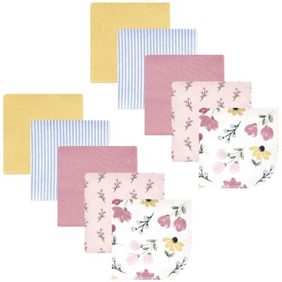 Hudson Baby Infant Girl Flannel Cotton Washcloths, Soft Painted Floral 10 Pack, One Size